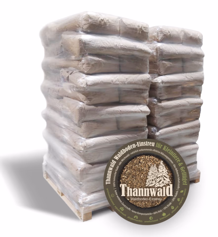 Für Züchter, Tierheime, Zoofachgeschäfte oder einfach alle Besitzer vieler Kleintiere und Hühner: Mit der Thannwald Waldboden-Einstreu als ganze Palette schaffen Sie eine naturnahe, gesunde und komfortable Umgebung für Ihre Tiere – und das mit einem praktischen Vorrat! Sichern Sie sich die bewährte Thannwald-Qualität im Großformat für die Grundeinstreuung Ihrer Gehege und Ställe.